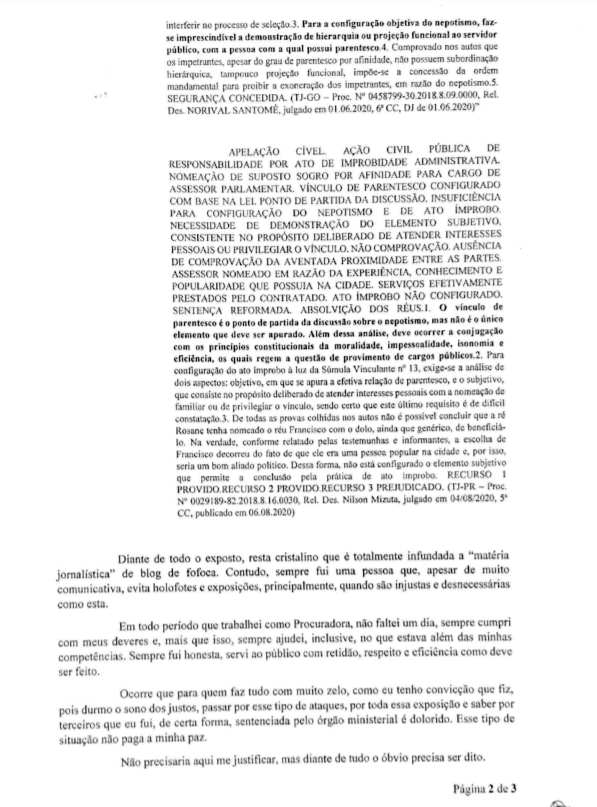 Em carta ao prefeito de Santarém (PA), Nélio Aguiar, a advogada Ana Luísa de Senna Figueira pediu exoneração do cargo de procuradora municipal, mas negou que o fato de ser filha do secretário municipal de Cultura, Luís Alberto Pixica Figueira, caracterize nepotismo. E atacou o “blog de fofoca” por “matéria jornalística” infundada sobre o caso.