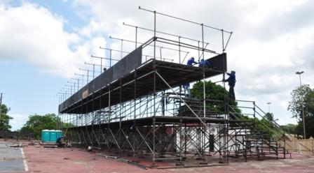 Começou o serviço de montagem das arquibancadas no saidódromo, em Alte do Chão. A estrutura é da empresa Loc Engenharia, de Belém.
